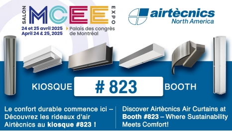Airtècnics North America will be at MCEE 2025 at the Palais des congrès de Montréal! Visit us at Booth #823 on April 24-25 to explore our innovative air curtains designed for energy efficiency and indoor comfort.
